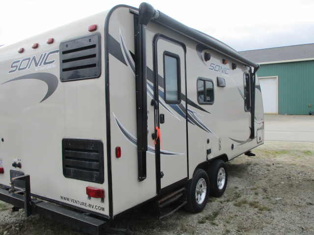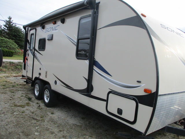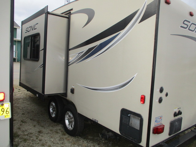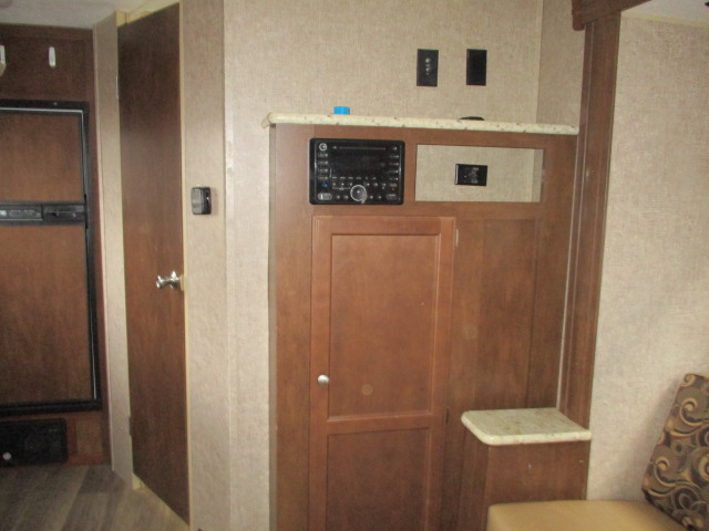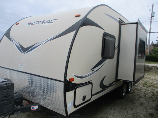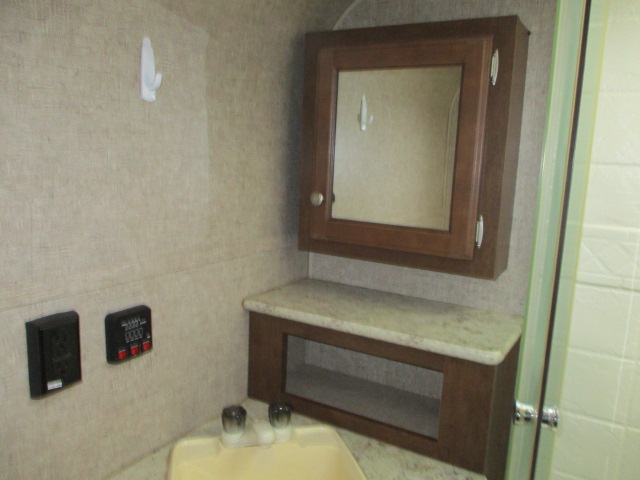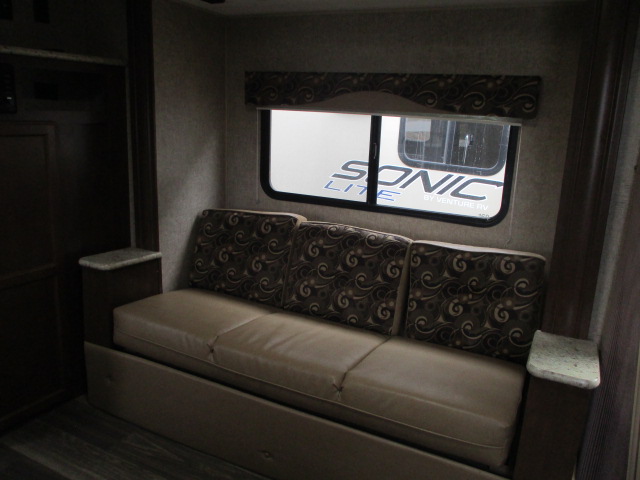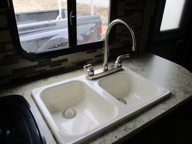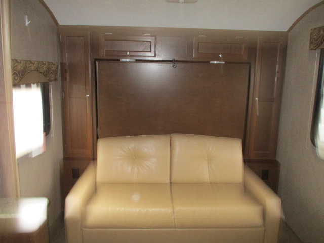 A couple’s unit with a front Murphy bed over the fold down sofa , slide w/ jack knife sofa and rear side bath w/ skylight over the shower. Other features :2 burner cooktop , convection microwave , double sink , two door Norcold fridge , stereo w/ 2 outside speakers, AC , power awning , outside shower , 4 stab jacks , front pass thru storage , aluminum wheels. UVW 1710 kg