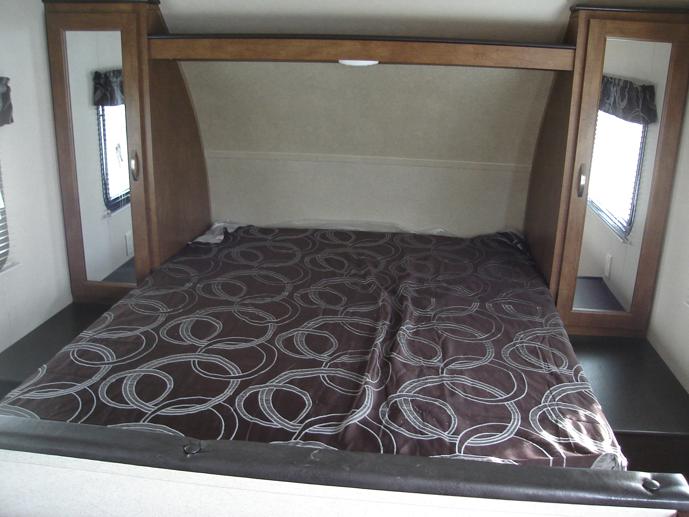 A very clean unit with a front queen bed , two rear side double bunks , and a rear side bath w/ skylight over the tub. Other features : fold down dinette , jack knife sofa , 3 burner cooktop , AC, stereo w/ 2 outside speakers , power tongue jack , power stab jacks , power awning , rear mount spare tire. UVW 2085 kg